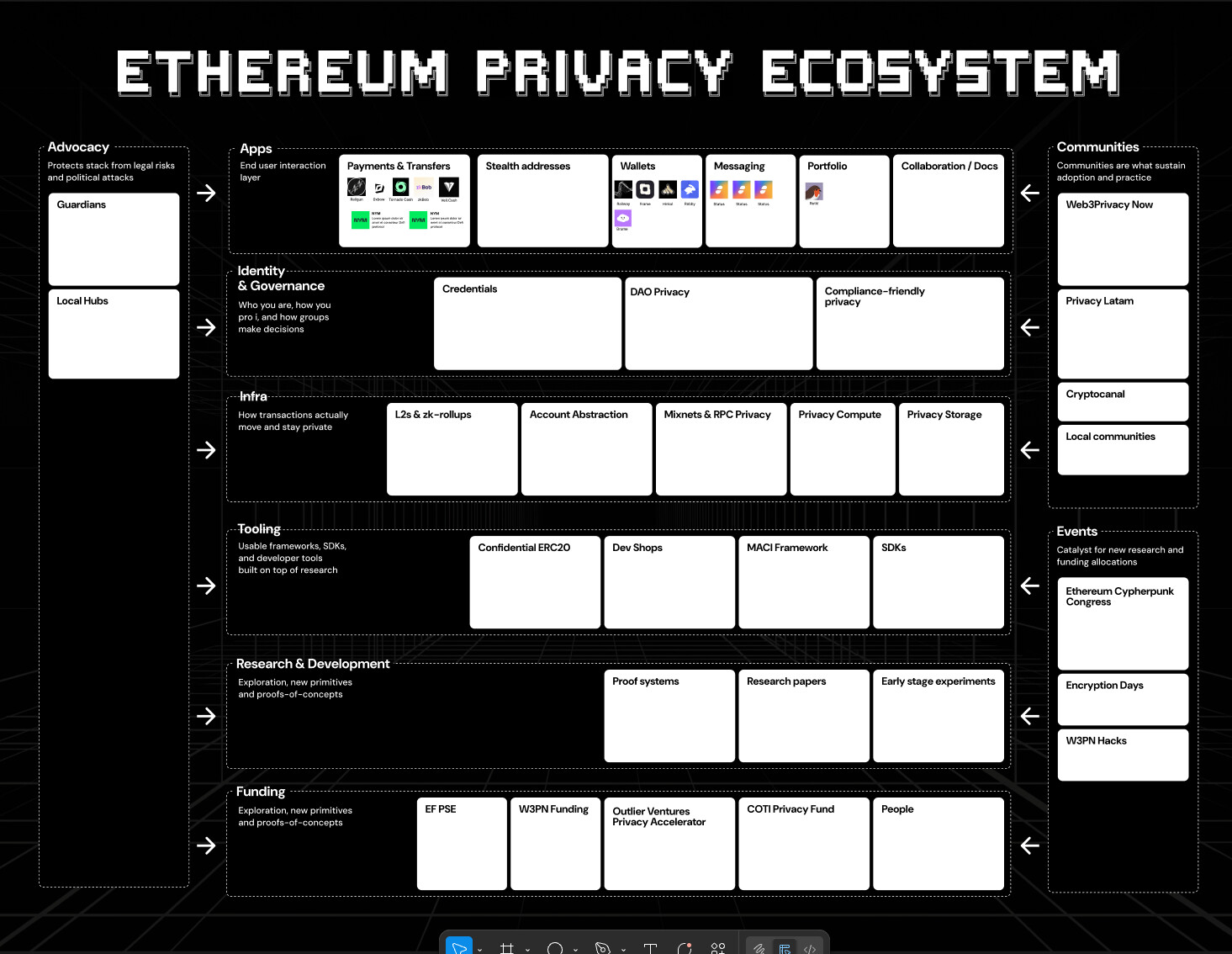 highlight Ethereum Privacy Ecosystem “stack” (from R&D tech to communities) that will be turned into a map